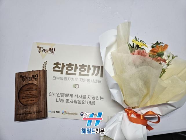 [Çì·²µå½Å¹® = ³ë½Â¾ð ±âÀÚ] ÀüºÏƯº°ÀÚÄ¡µµÀÚ¿øºÀ»ç¼¾ÅÍ(ÀÌ»çÀå °í¿µÈ£)°¡ 2023³âºÎÅÍ ÃßÁøÇϰí ÀÖ´Â ¡®ÇÔ²² ÀüºÏ, ÂøÇÑ ÇÑ ³¢¡¯ »ç¾÷ÀÌ Á¦579µ¹ Çѱ۳¯(10¿ù 9ÀÏ)À» ¸Â¾Æ 2025 ÇѱÛÇѸ¶´ç ±â³äÇà»ç¿¡¼­¡®¿ÃÇØÀÇ ¿ì¸®¸»ºû¡¯»ç¾÷À¸·Î ¼±Á¤µÇ¾î º¸¶÷ ¼ö¿©½Ä¿¡¼­ »óÀ» ¼ö»óÇß´Ù.