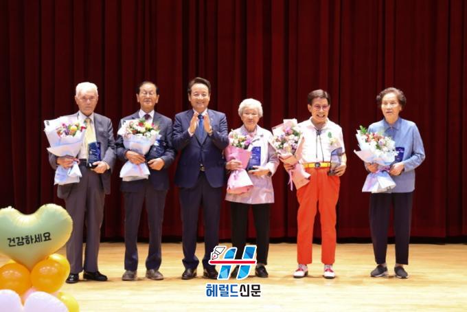 ¼ö»óÀÚ´Â ¹é¿µÃ¶(89) ¾¾, ½ÅÇö´ö(83) ¾¾, Àå±Ý¿Á(92) ¾¾, ¹Úº´º¹(82) ¾¾, Á¤¼øÁÖ(93) ¾¾´Ù. 93¼¼ÀÇ ÃÖ°í·É ¼ö»óÀÚÀÎ Á¤¼øÁÖ ¾î¸£½ÅÀº ¹®È­¼¾ÅÍ ¼ö¿µ°ú Çコ ÇÁ·Î±×·¥¿¡ Àû±Ø Âü¿©ÇÏ¸ç °Ç°­°ü¸®¸¦ À̾°í ÀÖ¾î ŸÀÇ ±Í°¨ÀÌ µÆ´Ù.