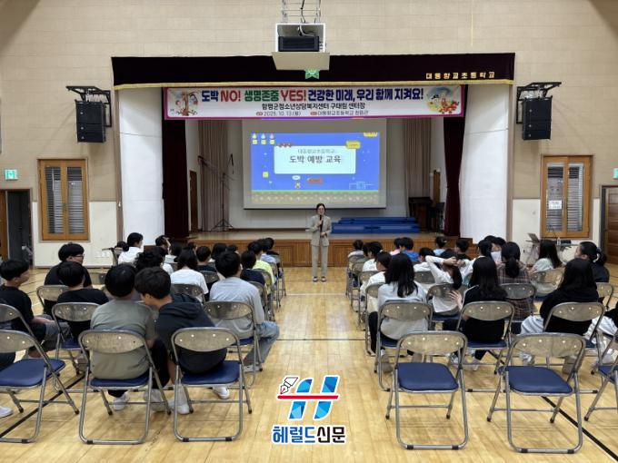 [Çì·²µå½Å¹® = Àü¿µ±Ô ±âÀÚ] ÇÔÆò±ºÃ»¼Ò³â»ó´ãº¹Áö¼¾ÅÍ¡¤ÇÔÆò±ºÇб³¹Ûû¼Ò³âÁö¿ø¼¾ÅÍ ±¸Å¸² ¼¾ÅÍÀåÀº Á÷Á¢ °­»ç·Î ³ª¼­ Áö³­ 10¿ù 13ÀÏ ´ëµ¿Çâ±³ÃʵîÇб³ Àü±³»ýÀ» ´ë»óÀ¸·Î ¡®Ã»¼Ò³â µµ¹Ú ¿¹¹æ ¹× »ý¸íÁ¸Áß ±³À°¡¯À» ¼º°øÀûÀ¸·Î ÁøÇàÇß´Ù°í ¹àÇû´Ù.