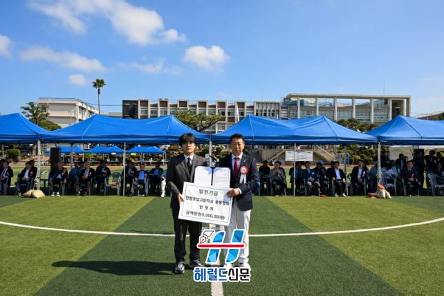 [Çì·²µå½Å¹® = Àü¿µ±Ô ±âÀÚ] ÇѸ²°ø¾÷°íµîÇб³(±³Àå ÀÌÁø½Â)´Â Áö³ 12ÀÏ ¿¸° µ¿¹® üÀ°´ëȸ¿¡¼ Ãѵ¿Ã¢È¸(ȸÀå Á¶±Ù¹è)·ÎºÎÅÍ ¡®Á¦ÁÖ¹æ¼Û(JIBS) °í±³µ¿¹® °ñÇÁ ÃÖ°Àü¡¯ ¿ì½Â »ó±Ý 1000¸¸¿øÀ» Çб³ ¹ßÀü±â±ÝÀ¸·Î ±âŹ¹Þ¾Æ ÀçÇлý 20¸í¿¡°Ô ÀåÇбÝÀ¸·Î Àü´ÞÇÏ¿´´Ù.