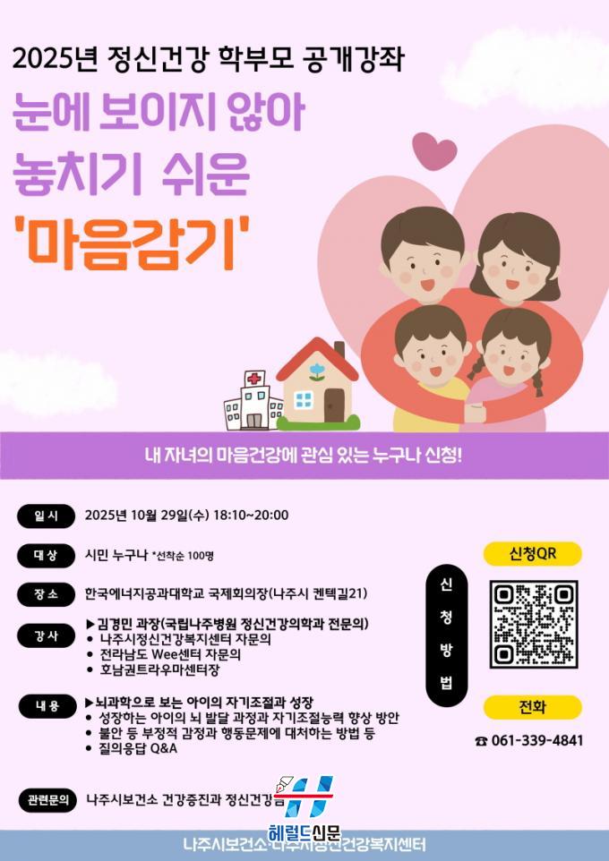 ÇÑÆí, ÀÚ¼¼ÇÑ »çÇ×Àº ³ªÁֽú¸°Ç¼Ò °Ç°ÁõÁø°ú Á¤½Å°Ç°ÆÀ(061-339-4850)À¸·Î ¹®ÀÇÇÏ¸é µÈ´Ù.