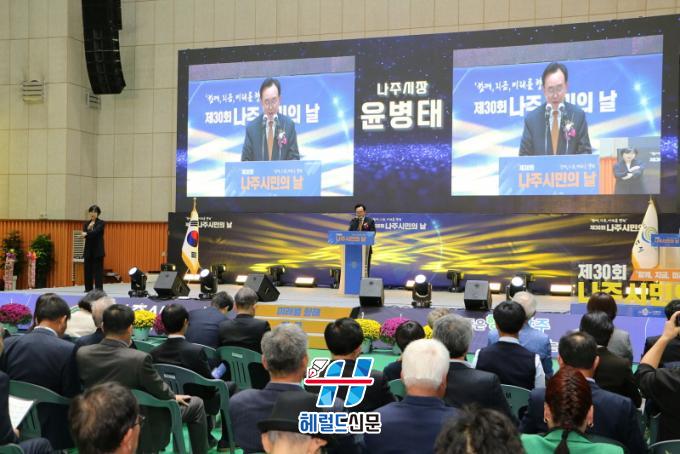 À±º´Å ³ªÁÖ½ÃÀåÀº ¡°½Ã¹ÎÀÇ ³¯Àº ¿ì¸® ¸ðµÎ°¡ ³ªÁÖÀÇ ÁÖÀÎÀÓÀ» È®ÀÎÇÏ´Â ¼ÒÁßÇÑ ³¯¡±À̶ó¸ç ¡°¿À´ÃÀÇ ¼º°ú¿¡ ¸Ó¹°Áö ¾Ê°í ½Ã¹Î°ú ÇÔ²² ´õ Å« ³ªÁÖ, ¿µ»ê°­ ¸£³×»ó½º¸¦ ÇâÇØ ³ª¾Æ°¡°Ú´Ù¡±°í ¸»Çß´Ù.