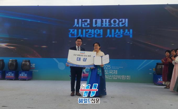 ´ë»óÀ» ¹ÞÀº ±è¹Î¾Æ¾¾´Â ÁøµµÀÇ Æ¯»ê¹°À» âÀÇÀûÀ¸·Î Ȱ¿ëÇØ ÀüÅë ¿ä¸®ÀÎ ¡®Çػ깰 Àå°ú¡¯¸¦ ÃâǰÇßÀ¸¸ç, ³²µµÀÇ ±íÀº ¸ÀÀ» Ç¥ÇöÇÏ°í °¨°¢ÀûÀÎ Á¶¸®¿Í Àü½Ã¸¦ ÅëÇØ ½É»çÀ§¿ø°ú °ü¶÷°´ÀÇ Âù»ç¸¦ ¹Þ¾Ò´Ù.