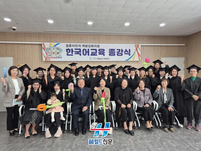 ÇØ³²±º °ü°èÀڴ¡°Çѱ¹¾î±³À°Àº ´Ü¼øÇÑ ¾ð¾î ÇнÀÀÌ ¾Æ´Ï¶ó ¼·ÎÀÇ ¹®È¸¦ ÀÌÇØÇÏ°í ¸¶À½À» ³ª´©´Â °úÁ¤À̶ó¸ç, À̹ø ±³À°À» ÅëÇØ °áÈ¥À̹ÎÀÚµéÀÌ Áö¿ª»çȸ ¼Ó¿¡¼ ´õ¿í Àڽۨ ÀÖ°Ô ¼ÒÅëÇϰí, ÇູÇÑ °¡Á·°ú µû¶æÇÑ °øµ¿Ã¼ÀÇ ÀÏ¿øÀ¸·Î ¼ºÀåÇϱ⠹ٶõ´Ù¡±°í ¹àÇû´Ù.