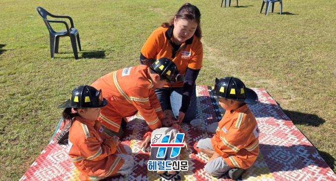| ¼Ò¹æ°ü Á÷¾÷üÇè¿¡ ³ª¼± ¾ÆÀ̵éÀÌ ¼Ò¹æ°ü º¹ÀåÀ» ÀÔ°í ÀÎ¸í±¸Á¶ Ȱµ¿À» Á÷Á¢ ¹è¿ì°í üÇèÇÏ´Â ¸ð½À.(»çÁøÁ¦°ø-³ªÁÖ½Ã)