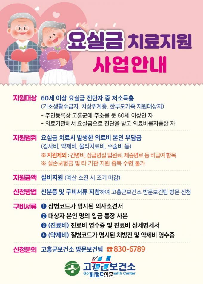 Áö¿ø ´ë»óÀº °íÈﱺ¿¡ ÁÖ¼Ò¸¦ µÐ 60¼¼ ÀÌ»ó ¾î¸£½Å Áß ÀÇ·á±â°ü¿¡¼ ¿ä½Ç±Ý Áø´ÜÀ» ¹Þ°í Ä¡·áºñ¸¦ ÁöÃâÇÑ ¡ã±âÃÊ»ýȰ¼ö±ÞÀÚ ¡ãÂ÷»óÀ§°èÃþ ¡ãÇѺθð°¡Á· µî Àú¼ÒµæÃþÀÌ´Ù.