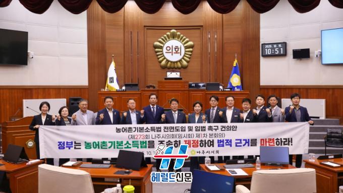 [Çì·²µå½Å¹® = ³ë½Â¾ð ±âÀÚ] ³ªÁÖ½ÃÀÇȸ(ÀÇÀå ÀÌÀç³²)´Â 15ÀÏ Á¦273ȸ ÀÓ½Ãȸ Á¦1Â÷ º»È¸ÀǸ¦ ¿­°í ¡®³ó¾îÃ̱⺻¼Òµæ¹ý Àü¸éµµÀÔ ¹× ÀÔ¹ý Ã˱¸ °ÇÀǾȡ¯À» äÅÃÇß´Ù.