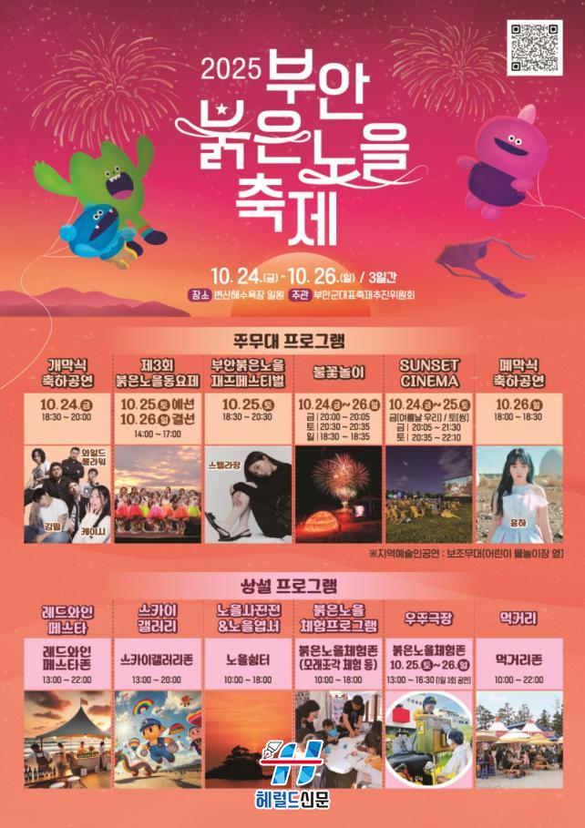 ±èÁ¾¹® ºÎ¾È±º ´ëÇ¥ÃàÁ¦ÃßÁøÀ§¿øÀåÀº ¡°ºÎ¾ÈÀÇ ¾Æ¸§´Ù¿î ÀÚ¿¬°æ°ü°ú ´Ù¾çÇÑ ÇÁ·Î±×·¥À» ÇÑÀÚ¸®¿¡ ´ãÀº 2025 ºÎ¾ÈºÓÀº³ëÀ»ÃàÁ¦¿¡ °¡Á·, ¿¬Àΰú ÇÔ²² ¹æ¹®ÇÏ½Ã¾î »õ·Î¿î °¡À»³¯ÀÇ Ãß¾ïÀ» ¸¸µé¾î °¡½Ã±æ ¹Ù¶õ´Ù.¡±°í ÀüÇß´Ù.