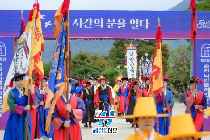 ¡®¼øÃµ ³«¾ÈÀ¾¼º, ½Ã°£ÀÇ ¹®À» ¿´Ù¡¯¶ó´Â ÁÖÁ¦·Î ¿¸° À̹ø ÃàÁ¦´Â 17ÀÏ ¿ÀÈÄ ³«¾È±º¼ö ºÎÀÓÇà·Ä°ú ±º¾Ç´ë ÇàÁøÀ¸·Î ½ÃÀÛµÆÀ¸¸ç, Á¶¼±½Ã´ë·ÎÀÇ ¹®À» Ȱ¦ ¿©´Â »ó¡ÀûÀÎ ÆÛÆ÷¸Õ½º¸¦ ¼±º¸ÀÎ °³¸·½ÄÀº ³ë°ü±Ô ¼øÃµ½ÃÀåÀ» ºñ·ÔÇÑ ÁÖ¿ä ³»ºóµéÀÌ Âü¿©ÇÑ °¡¿îµ¥ ÁøÇàµÆ´Ù.