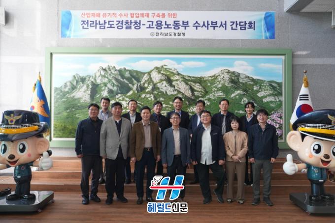 [Çì·²µå½Å¹® = ³ë½Â¾ð ±âÀÚ] Àü³²°æÂûû(ûÀå Ä¡¾È°¨ ¸ð»ó¹¦)Àº 10¿ù 23ÀÏ Àü³²°æÂûû¿¡¼­ ±¤ÁÖÁö¹æ°í¿ë³ëµ¿Ã» (¸ñÆ÷¡¤¿©¼öÁöû)°ú »ê¾÷ÀçÇØ ¼ö»ç ½Ç¹«ÀÚµé °£ °£´ãȸ¸¦ °³ÃÖÇÏ°í »óÈ£ Çù¾÷ü°è¸¦ ±¸ÃàÇÏ¿´´Ù.