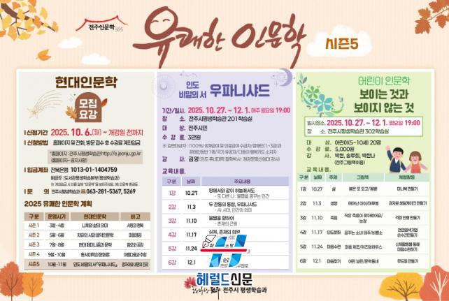 À¯ÄèÇÑ Àι®ÇÐÀº ÀüÁֽùÎÀÌ¸é ´©±¸³ª Âü¿©ÇÒ ¼ö ÀÖÀ¸¸ç, ¼ö°·á´Â 3¸¸ ¿ø(¾î¸°ÀÌ Àι®ÇÐ=5000¿ø)ÀÌ´Ù. Âü¿©¸¦ ¿øÇÏ´Â ½Ã¹ÎÀº ÀüÁÖ½ÃÆò»ýÇнÀ°ü ´©¸®Áý(e.jeonju.go.kr) ¶Ç´Â ÀüÈ(063-281-5367)·Î ½ÅûÇÏ¸é µÈ´Ù.