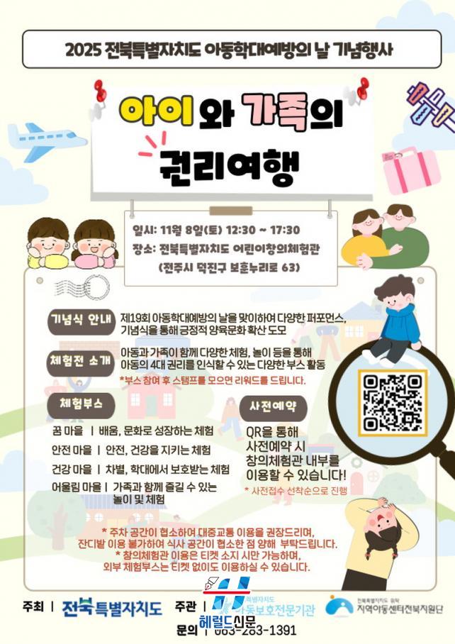 À̹ø 2025 ¾Æµ¿Çд뿹¹æÀÇ ³¯ ±â³ä½Ä°ú ¾Æµ¿±Ç¸®Ã¼ÇèÀüÀº ¾Æµ¿Çд뿹¹æÀÇ ³¯À» ±â³äÇÏ¿© ¿¹¹æÈ°µ¿À» ÃßÁøÇÑ ´ëÀÀÀηÂÀÇ ³ë°í¸¦ Ä¡ÇÏÇϰí, µµ¹Î¿¡°Ô °¡Á·Ã¼ÇèÇÁ·Î±×·¥À» Á¦°øÇÏ¿© ¾Æµ¿±Ç¸® ÀνÄÀ» Çâ»ó½Ã۱â À§ÇØ ¸¶·ÃµÈ Çà»çÀÌ´Ù.