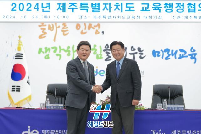 ±³À°ÇàÁ¤ÇùÀÇȸ´Â Á¦ÁÖµµ¿Í µµ±³À°Ã» °£ ±³À°ÇàÁ¤ Çö¾ÈÀ» ³íÀÇÇÏ°í ¹ßÀü¹æ¾ÈÀ» ¸ð»öÇÏ´Â ÇùÀDZⱸ´Ù. µµÁö»ç¿Í ±³À°°¨ÀÌ °øµ¿ ÀÇÀåÀ» ¸Ã°í, µµÀÇȸ ÀÇÀåÀÌ ÃßõÇÑ µµÀÇ¿ø 2¸í°ú ¾È°Ç °ü·Ã µµ¿Í ±³À°Ã» ½Ç․±¹Àå µîÀÌ Âü¿©ÇÑ´Ù.
