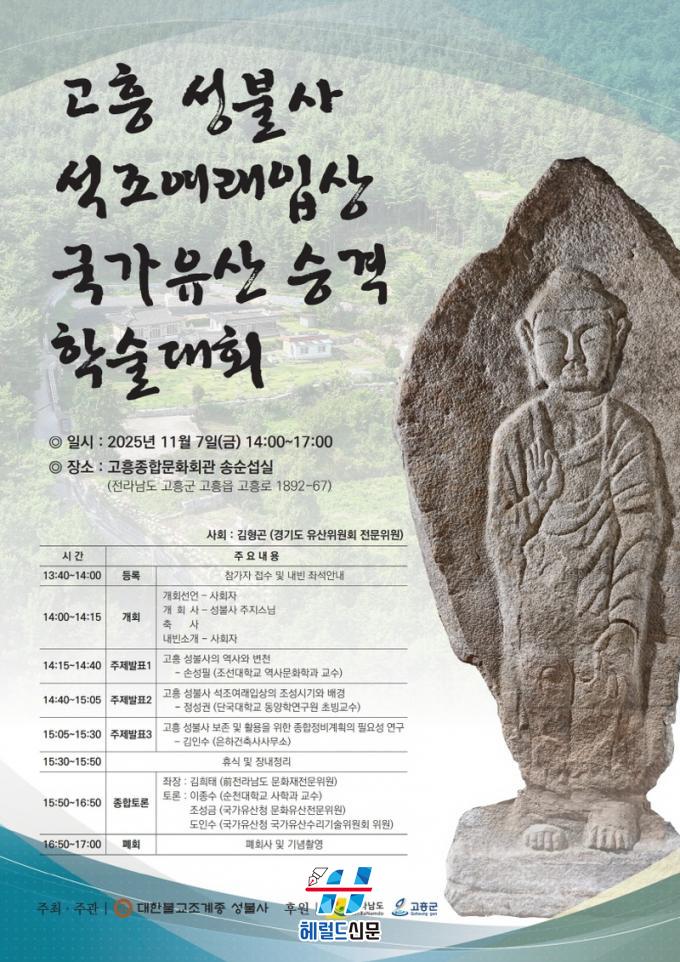 À̹ø Çмú´ëȸ´Â Àü¶ó³²µµ¿Í °íÈﱺÀÌ ÁÖÃÖÇϰí, ´ëÇѺұ³Á¶°èÁ¾ ¼ººÒ»ç¿Í û¶÷¹®ÈÀ¯»ê¿¬±¸¿øÀÌ ÁÖ°üÇØ ÁøÇàÇÒ ¿¹Á¤ÀÌ´Ù. Àü¶ó³²µµ À¯Çü¹®ÈÀ¯»ê Á¦250È£ÀÎ ¡®°íÈï ¼ººÒ»ç ¼®Á¶¿©·¡ÀÔ»ó¡¯ÀÇ ±¹°¡À¯»êÀû °¡Ä¡¸¦ ÀçÆò°¡Çϰí, ¼ººÒ»ç(ÁÖÁö Áö¾Ï½º´Ô)¸¦ ºñ·ÔÇÑ °íÈï Áö¿ª ºÒ±³¹®ÈÀ¯»êÀÇ ¿ª»çÀû Àǹ̸¦ ÀçÁ¶¸íÇϱâ À§ÇØ ¸¶·ÃµÆ´Ù.