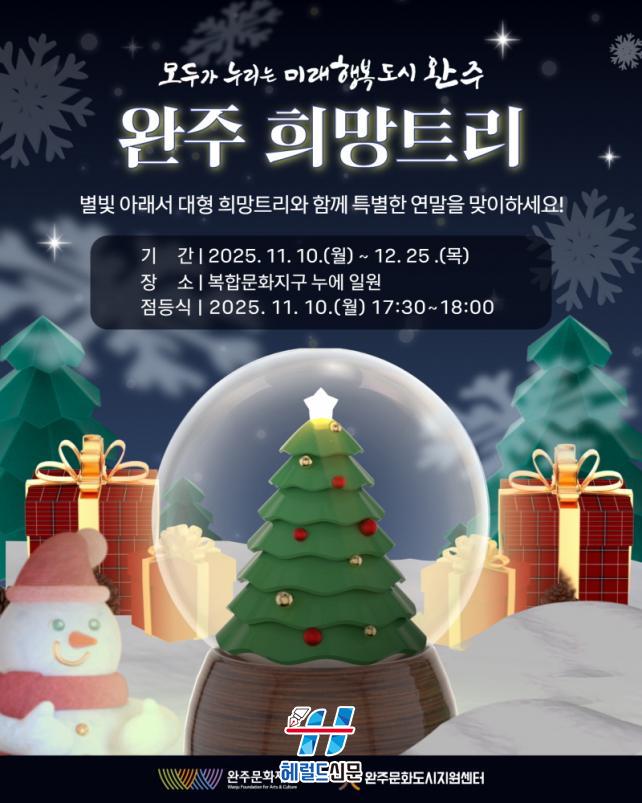 À̹ø ´ëÇü Èñ¸Á Æ®¸®´Â ¿À´Â 11¿ù 10ÀϺÎÅÍ 12¿ù 25ÀϱîÁö 46Àϰ£ Á¡µîµÇ¸ç, ¿¬¸»¿¬½Ã µ¿¾È ¿ÏÁÖ±º¹Î°ú ¹æ¹®°´µé¿¡°Ô µû¶æÇÑ È޽İú Æ÷ÅäÁ¸ÀÇ Áñ°Å¿òÀ» ¼±»çÇÒ ¿¹Á¤ÀÌ´Ù.