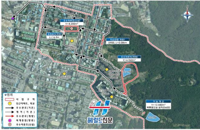 ƯÈ÷, ÀüÁֽô 1´Ü°è »ç¾÷À¸·Î ½Å¼º°ø¿ø ³» ³ìÁö°ø°£ ÁöÇÏ¿¡ ¾à 8200Åæ ±Ô¸ðÀÇ ¿ì¼ö¸¦ ´ã¾ÆµÑ ¼ö ÀÖ´Â Àú·ùÁ¶¸¦ ¼³Ä¡ÇØ µµ½ÉÁö ħ¼ö À§Çè ¿äÀÎÀ» ÇØ¼ÒÇÒ °èȹÀÌ´Ù. ÀÌÈÄ ½Ã´Â ¿À´Â 2027³âºÎÅÍ ½ÃÇàµÇ´Â 2´Ü°è »ç¾÷À» ÅëÇØ ¾à 6960ÅæÀÇ ¿ì¼ö¸¦ ±âÁ¸ ÇмÒÁ¦(¼Ò·ùÁö)¿¡ Ãß°¡ÀûÀ¸·Î ´ã¾ÆµÑ ¼ö ÀÖµµ·Ï ÇмÒÁ¦¸¦ Àú·ùÁö·Î Á¤ºñÇÒ °èȹÀÌ´Ù. ¶Ç, ÇмÒÁ¦ ÁÖº¯¿¡ ¼³Ä¡ÇÏ´Â °ü¸®¿ë µµ·Î´Â ÁֹΠÆíÀÍ Á¦°øÀ» À§ÇØ ÁֹεéÀÌ »êÃ¥·Î·Î ÀÌ¿ëÇÒ ¼ö ÀÖµµ·Ï °èȹÇß´Ù.