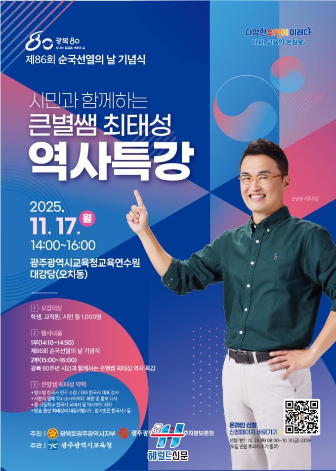 ÃÖ °»ç´Â ¡®±ÙÇö´ë»çÀÇ °úÁ¤ ¹× ¿øÀÎ, ¾ÕÀ¸·Î °¡¾ßÇÒ ±æ¡¯À» ÁÖÁ¦·Î Çѱ¹ ±ÙÇö´ë»çÀÇ ÁÖ¿ä »ç°ÇÀ» ¼³¸íÇÒ ¿¹Á¤ÀÌ´Ù. °¿¬ Âü¿©¸¦ Èñ¸ÁÇÏ´Â ÃÊ¡¤Áß¡¤°í Çлý, ±³Á÷¿ø, Çкθð µîÀº ¿Â¶óÀÎ(https://naver.me/GLzCfbsQ) ¶Ç´Â Å¥¾Ë(QR)ÄÚµå·Î ½ÅûÇÏ¸é µÈ´Ù. ´Ü, ¸ðÁýÀοø 1õ¸íÀÌ ³ÑÀ¸¸é ½ÅûÀº ÀÚµ¿ Á¾·áµÈ´Ù.
