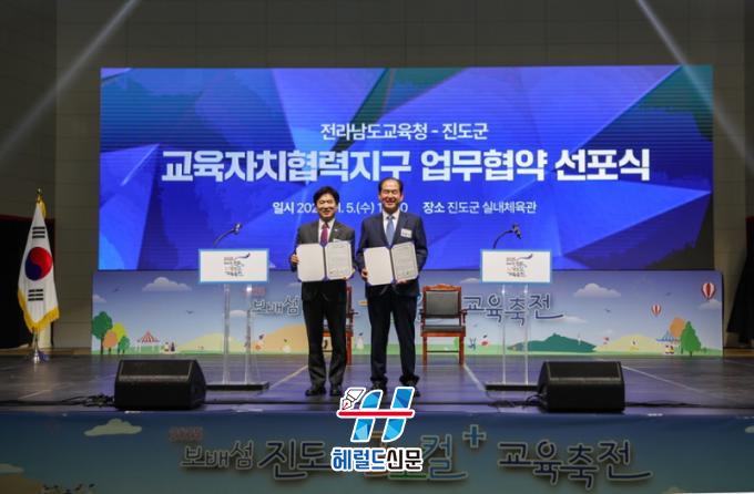 ÇÑÆí, À̹ø Çù¾àÀº Áøµµ±º°ú Áøµµ±³À°Áö¿øÃ»ÀÌ ÇÔ²² ÃßÁø ÁßÀÎ ¡®±³À°¹ßÀüƯ±¸ ½Ã¹ü»ç¾÷¡¯°ú ¿¬°èÇØ, Áö¿ª ¸ÂÃãÇü ±³À°Çõ½ÅÀ» ¾Õ´ç±æ °ÍÀ¸·Î ±â´ëµÈ´Ù.