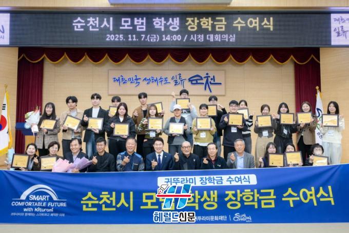 ÀåÇÐ±Ý ¼ö¿©½Ä¿¡´Â ÀåÇлý ¹× Çкθð µî 70¿© ¸íÀÌ Âü¼®ÇßÀ¸¸ç, ½Ã´Â Áö¿ª ³» ±¹¸³¼øÃµ´ëÇб³, û¾Ï´ëÇб³, ¼øÃµÁ¦ÀÏ´ëÇб³ 3°³ ´ëÇп¡¼ Ãßõ¹ÞÀº Çлý 25¸í¿¡°Ô °¢ 2¹é¸¸¿ø¾¿, ÃÑ 5õ¸¸¿øÀÇ ÀåÇбݰú ÀåÇÐÁõ¼¸¦ Àü´ÞÇß´Ù.