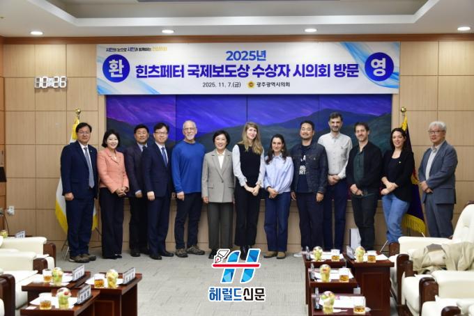 °£´ãȸ¿¡ Âü¼®ÇÑ ÈùÃ÷ÆäÅÍ ±¹Á¦º¸µµ»ó ¼ö»óÀÚµéÀº ¡°¹ÎÁÖÁÖÀÇÀÇ »ó¡ÀûÀÎ µµ½Ã ±¤ÁÖ¿¡¼ ½Ã¹ÎÀ» ´ëÇ¥ÇÏ´Â ÀÇȸ¿¡ ¹æ¹®ÇØ Å« ¿µ±¤ÀÌ´Ù¡±¶ó°í ¼Ò°¨À» ÀüÇÏ¸ç ¡°Áö±Ý ÀÌ ¼ø°£¿¡µµ ÀηùÀÇ Á¸¾öÀÌ À§Çù¹Þ°í ÀÖ´Â Àü ¼¼°è ÇöÀå¿¡ ±¤ÁÖ ½Ã¹ÎµéÀÇ ¿¬´ë¿Í ±íÀº °ü½ÉÀ» ºÎʵ台´Ù¡±°í ¹àÇû´Ù.