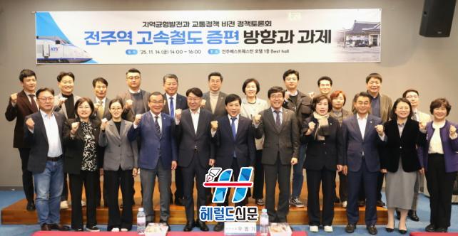 ÀüÁÖ½Ã¿Í ÀüÁÖ½ÃÁ¤¿¬±¸¿øÀº 14ÀÏ º£½ºÆ®¿þ½ºÅÏÇ÷¯½º ÀüÁÖÈ£ÅÚ º£½ºÆ®È¦¿¡¼ ¿ì¹ü±â ÀüÁÖ½ÃÀå°ú ³²°ü¿ì ÀüÁÖ½ÃÀÇȸ ÀÇÀå, À̼ºÀ± ±¹È¸ÀÇ¿ø(´õºÒ¾î¹ÎÁÖ´ç, ÀüÁÖ½ÃÀ»), ±³Å롤öµµ ºÐ¾ß Àü¹®°¡¿Í Çаè, °ü°è±â°ü, ½Ã¹Î µî 100¿© ¸íÀÌ Âü¼®ÇÑ °¡¿îµ¥ ¡®Áö¿ª ±ÕÇü¹ßÀü°ú ±³ÅëÁ¤Ã¥ ºñÀü–ÀüÁÖ¿ª °í¼Óöµµ ÁõÆí ¹æÇâ°ú °úÁ¦¡¯ Á¤Ã¥Åä·Ðȸ¸¦ °³ÃÖÇß´Ù.